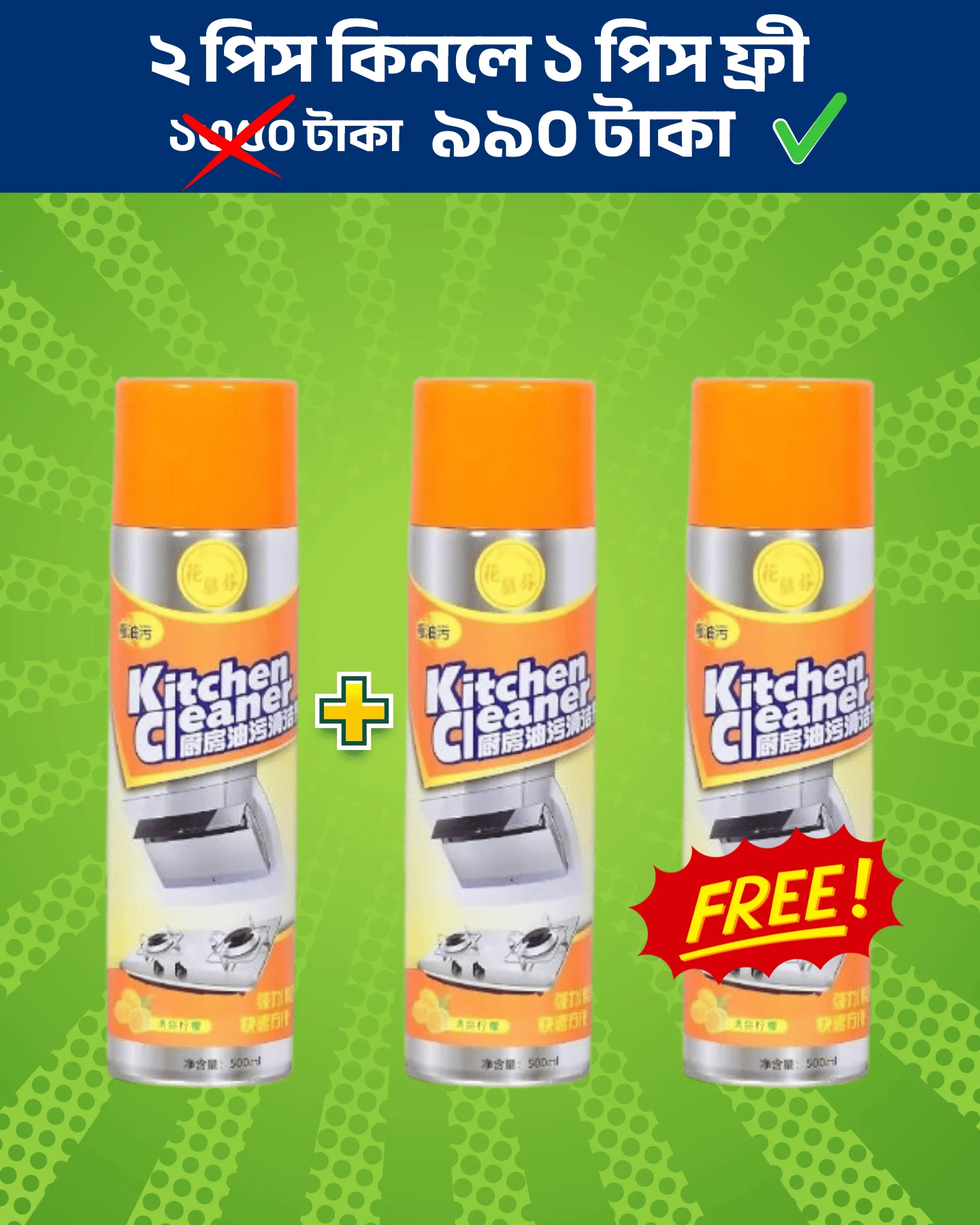 রান্নাঘরের তেল-চিটচিটে দাগ, প্যানের পোড়া তেল বা খাবারের জমে থাকা ময়লা পরিষ্কার করতে এখন আর কষ্ট নয়। Kitchen Oil Stain Cleaner 500ml Foam Spray আপনার রান্নাঘরকে রাখবে ঝকঝকে, সতেজ ও জীবাণুমুক্ত। উন্নত ফোম প্রযুক্তির কারণে এটি দ্রুত কাজ করে এবং কঠিন তেলের দাগও সহজে দূর করে।